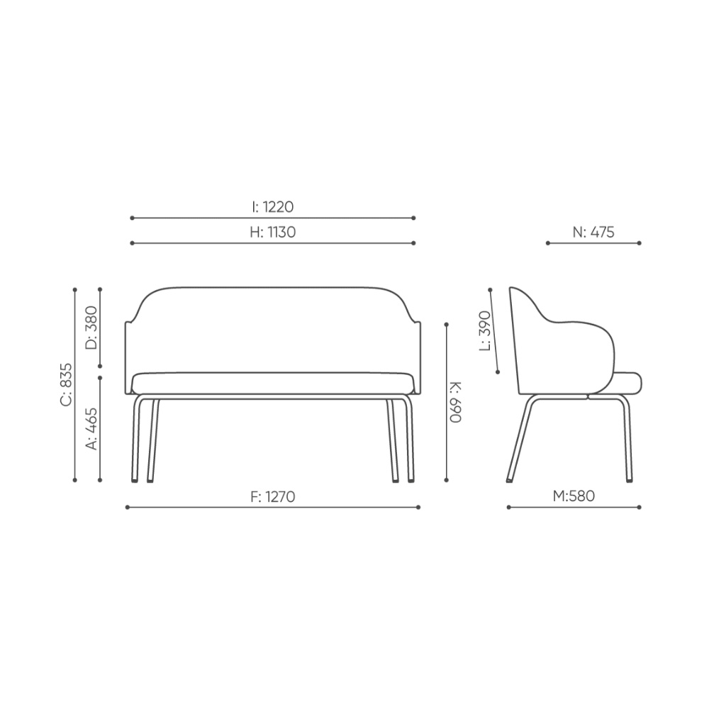 - Kokoverhoiltu selkänojallinen penkki